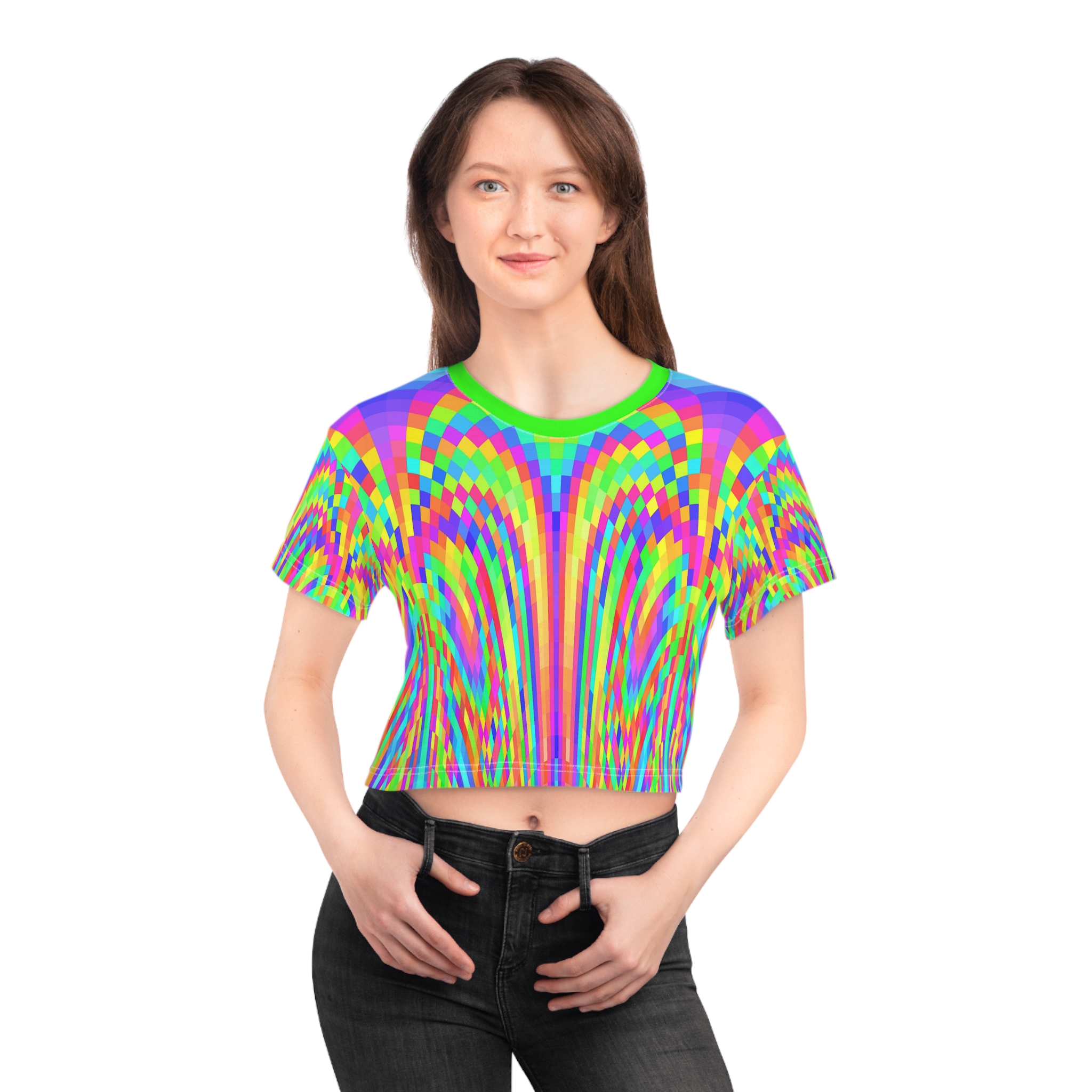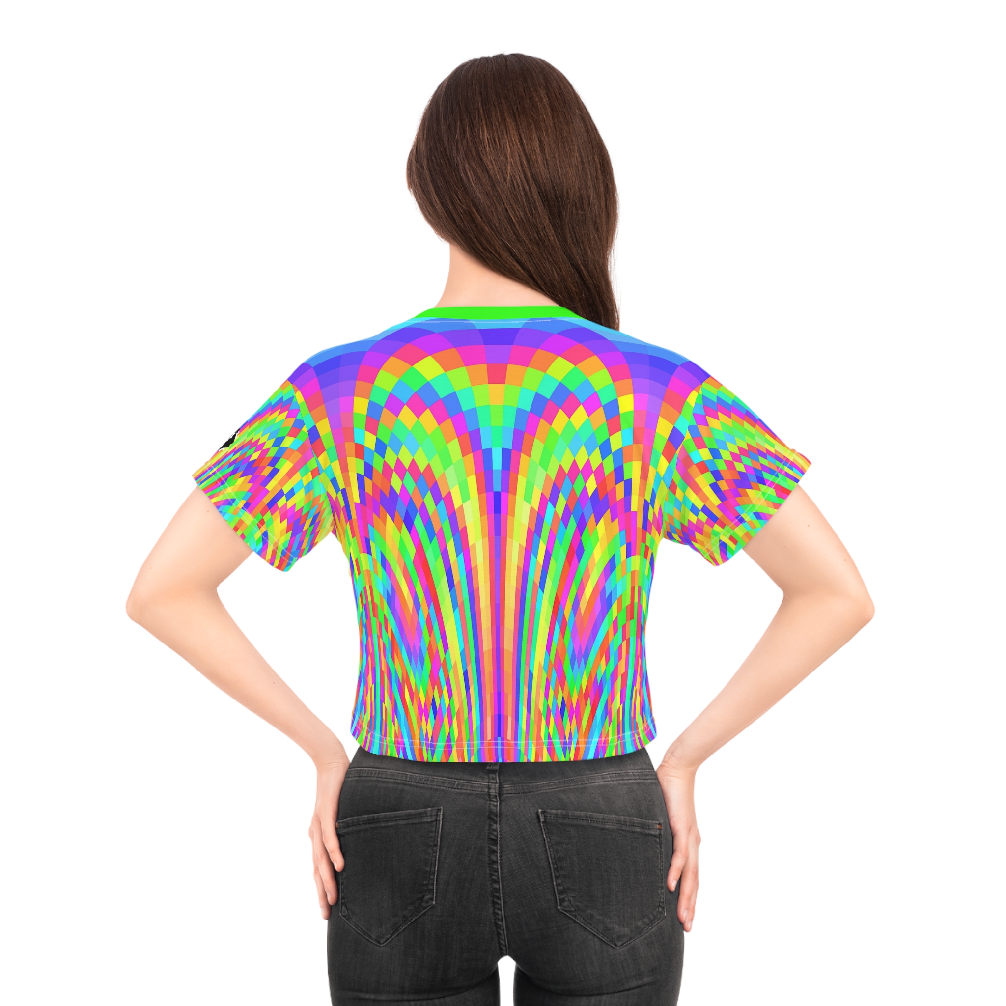 This personalized crop top has both comfort and style in spades. Add whimsical patterns, feel-good designs and create a unique AOP crop tee that’s perfect for everyday wear. Made 100% with silky soft polyester that is both lightweight and breathable.