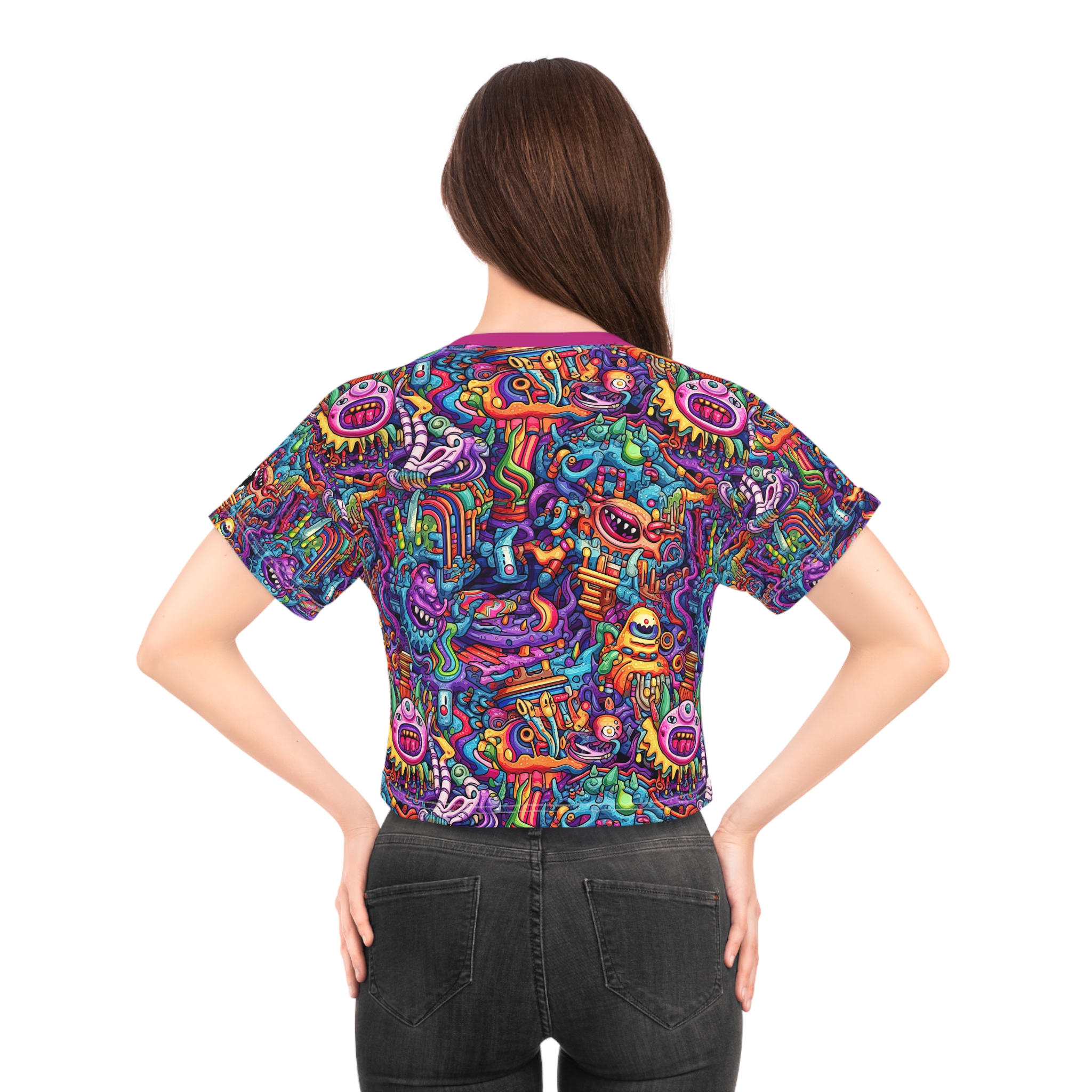 This personalized crop top has both comfort and style in spades. Add whimsical patterns, feel-good designs and create a unique AOP crop tee that’s perfect for everyday wear. Made 100% with silky soft polyester that is both lightweight and breathable.
