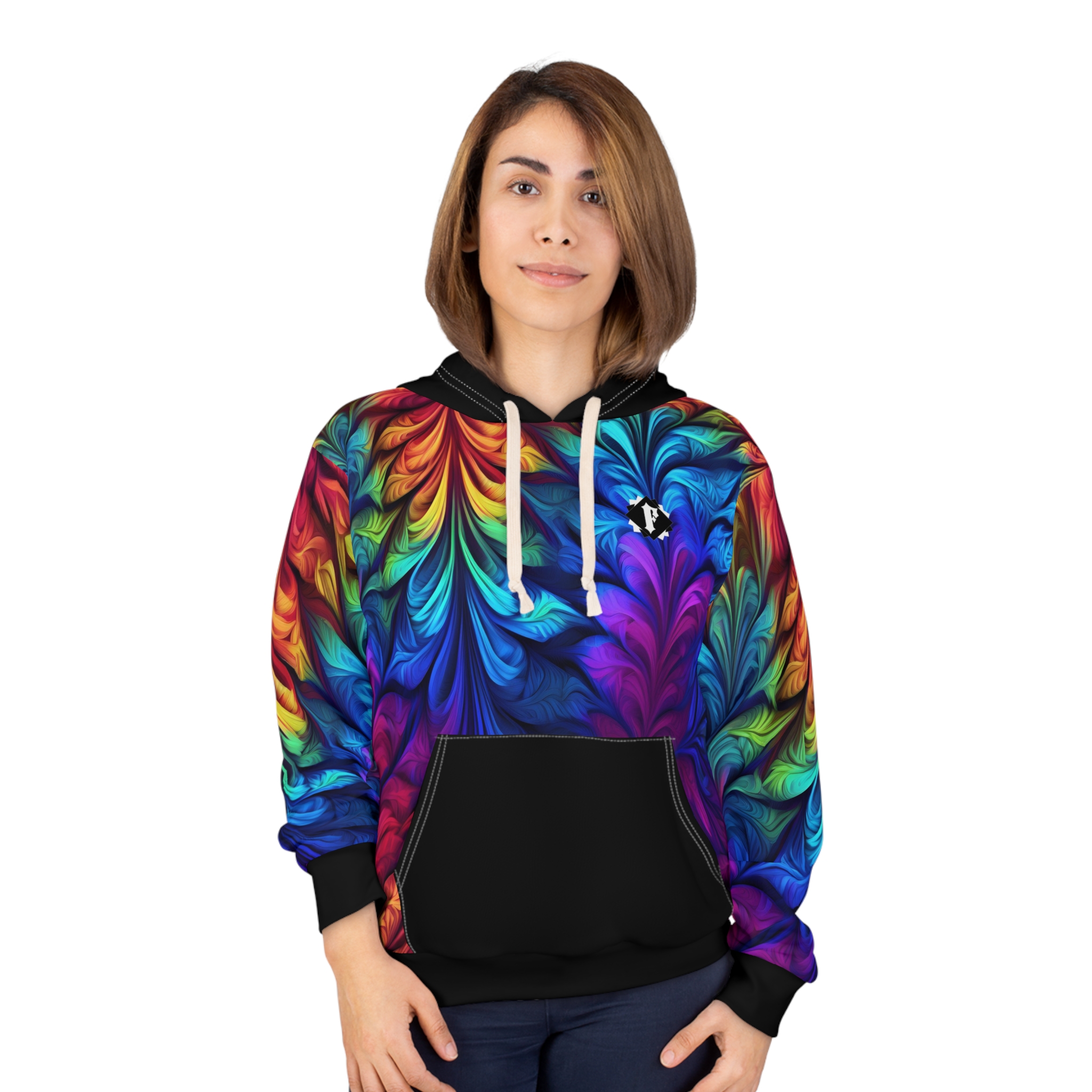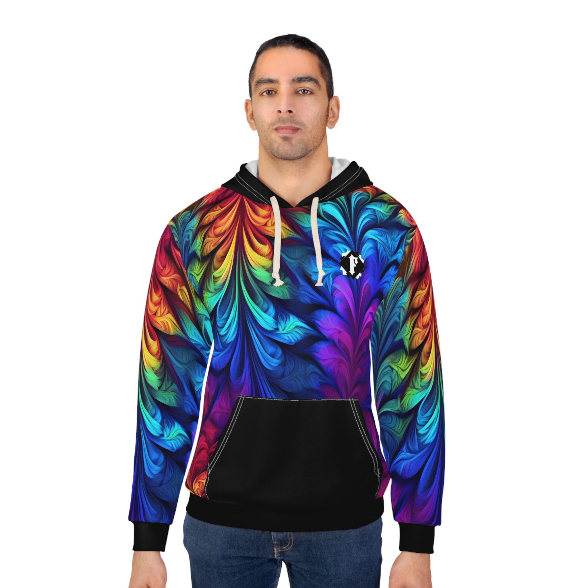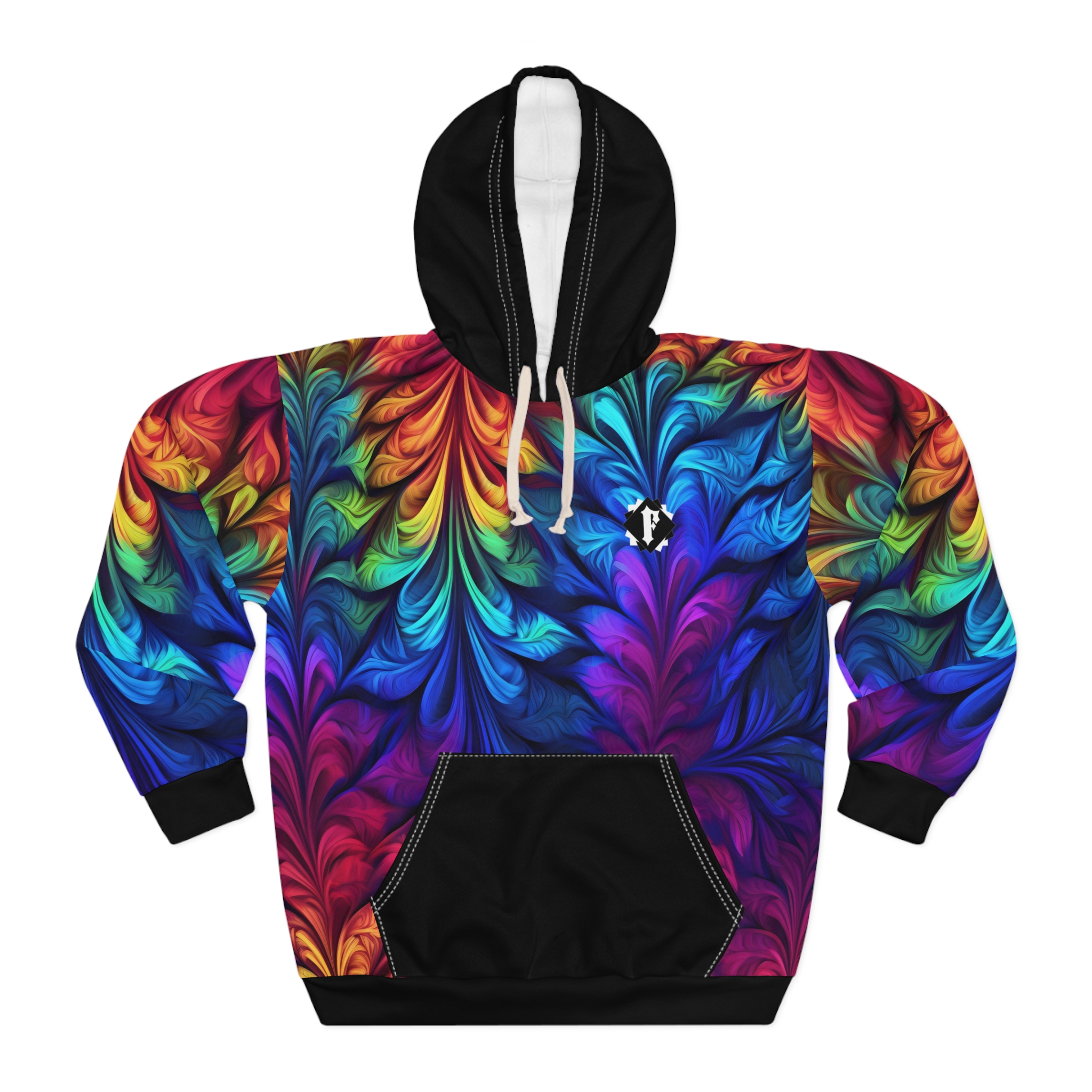 This Pullover Hoodie is made for warmth and comfort. Made to be easily customizable without white lines at the seams, this all-over print pullover hoodie is waiting for you to add a great design and it instantly becomes fashionable. It features a large front pocket, hood with drawstring, and is custom cut and sewn.