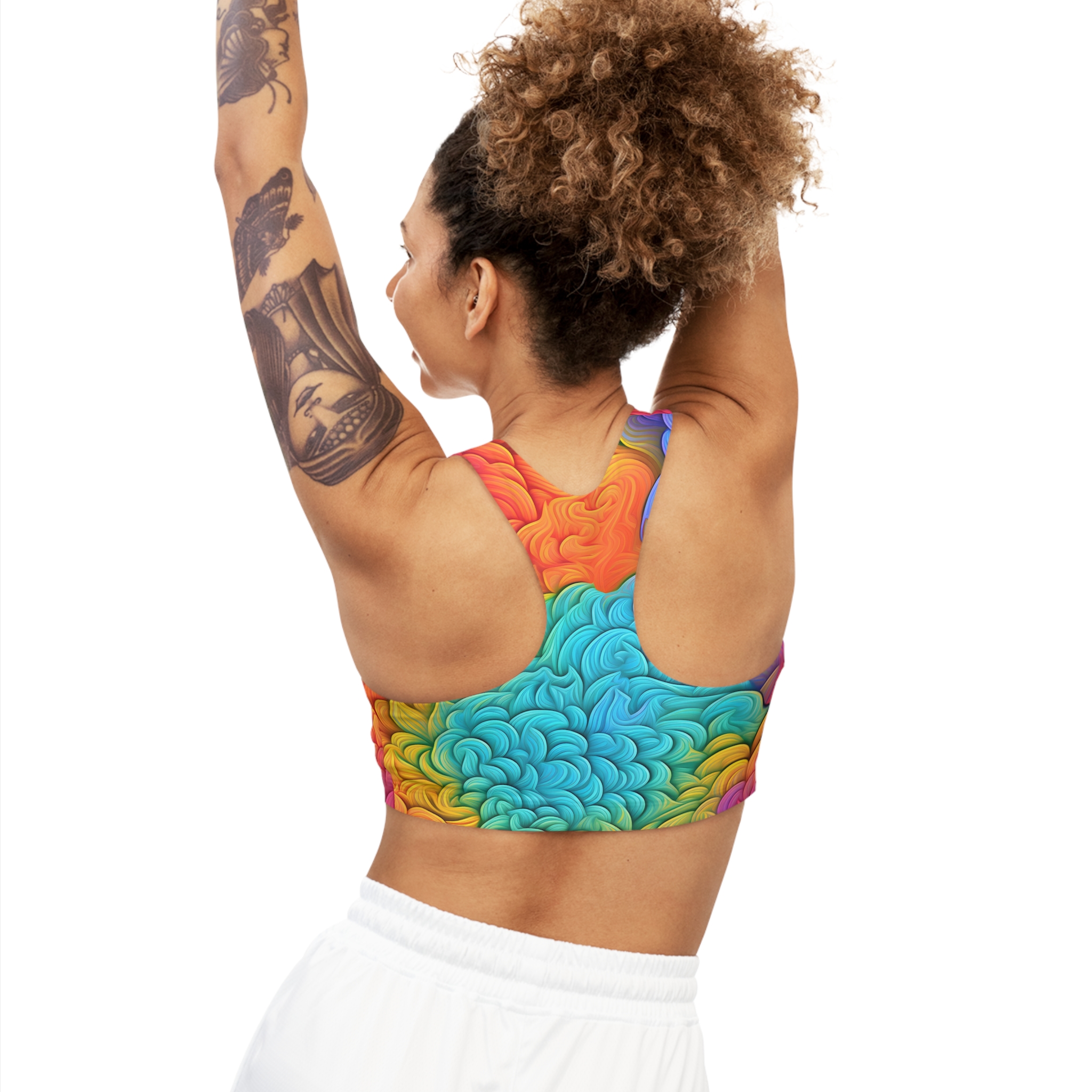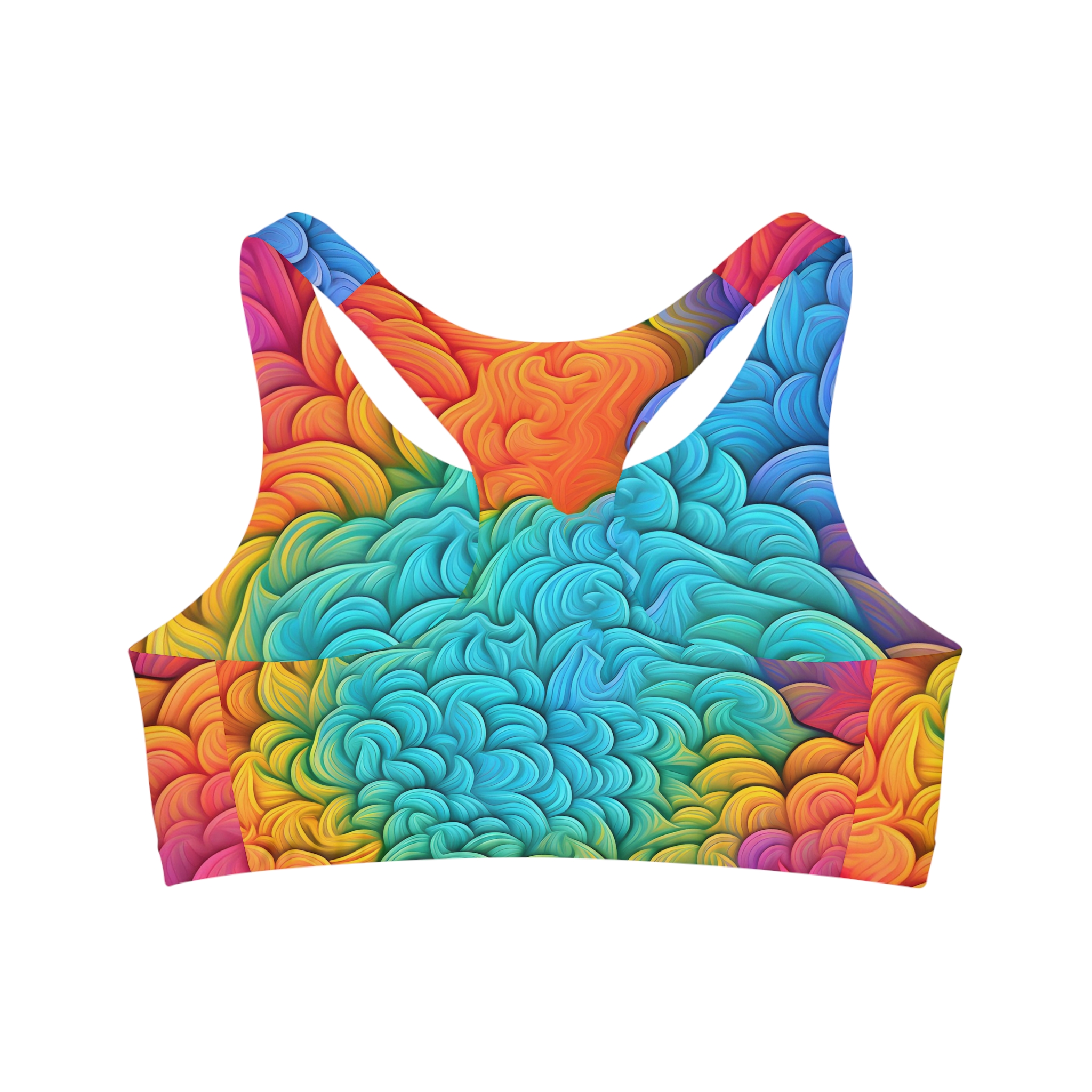 This custom sports bra is made to keep you stylishly comfy and well supported during peak performance. Made with 82% Microfiber Polyester and 18% Spandex, these bras strike the perfect balance between softness and stretchiness. The durable fabric delivers medium support while your custom ideas can cover the entire surface of the bra, making it a highly unique item for sports enthusiasts.