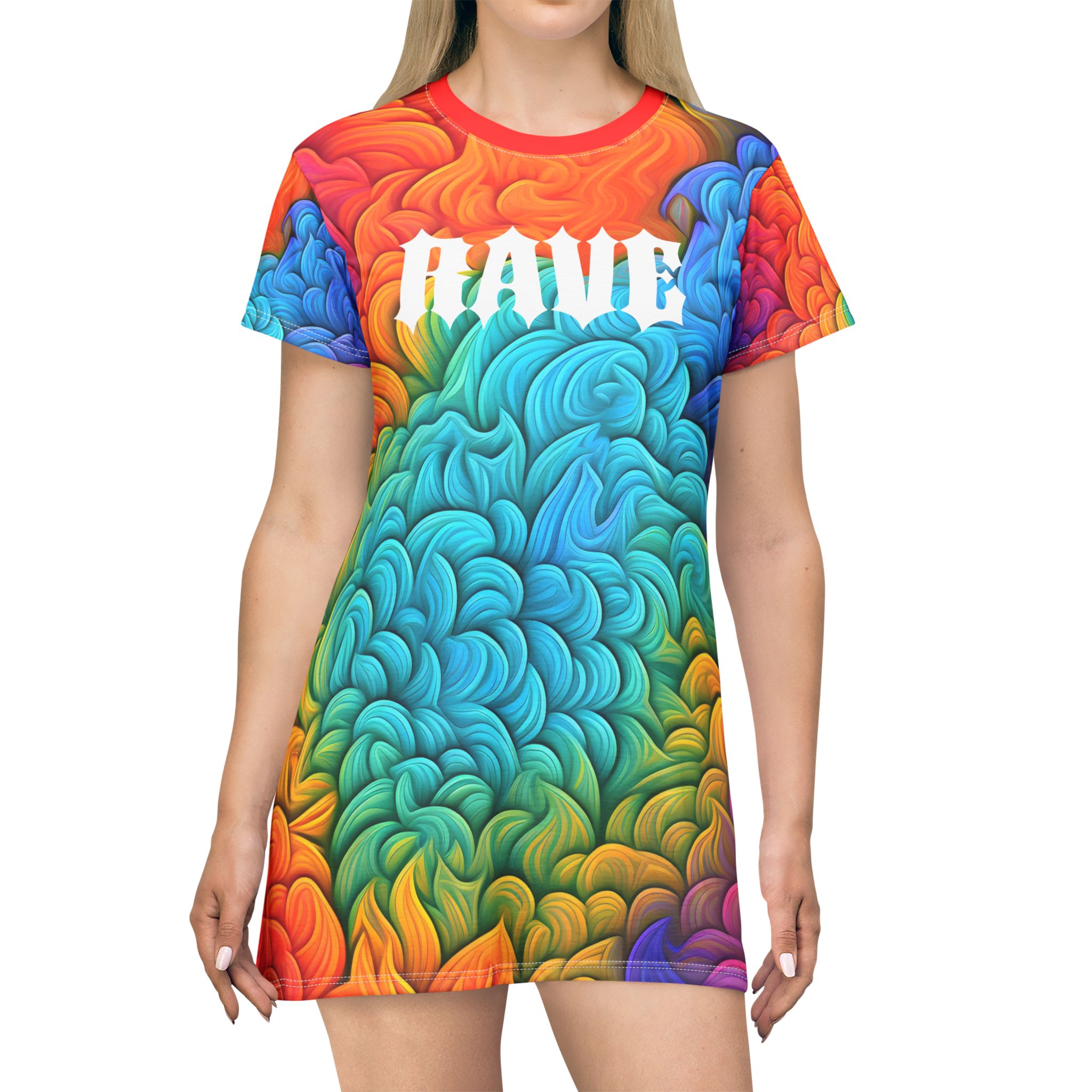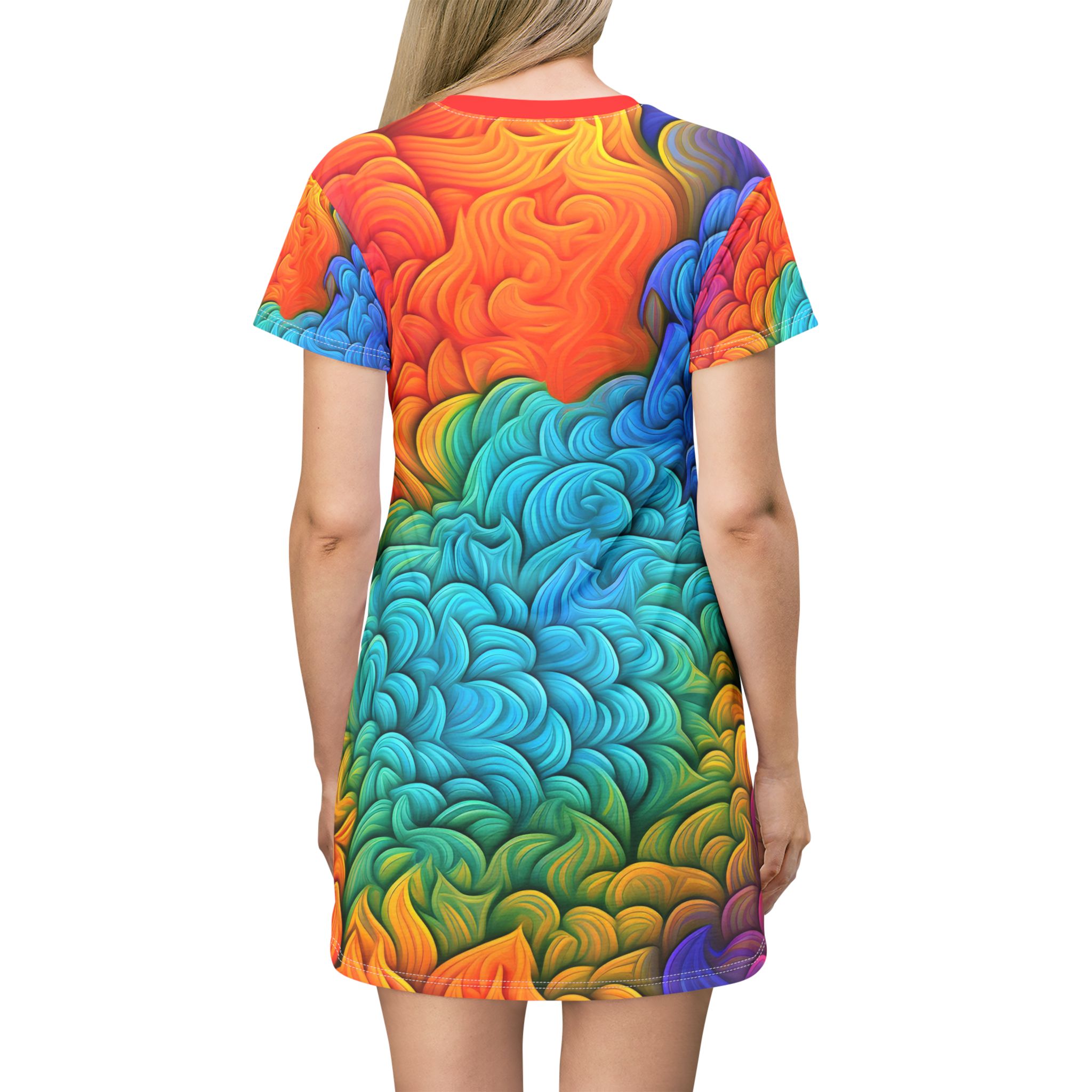 This All-Over-Print T-Shirt Dress is tagless, custom cut and sewn to match every style. The fun prints will make this t-shirt dress a great piece to sell online.