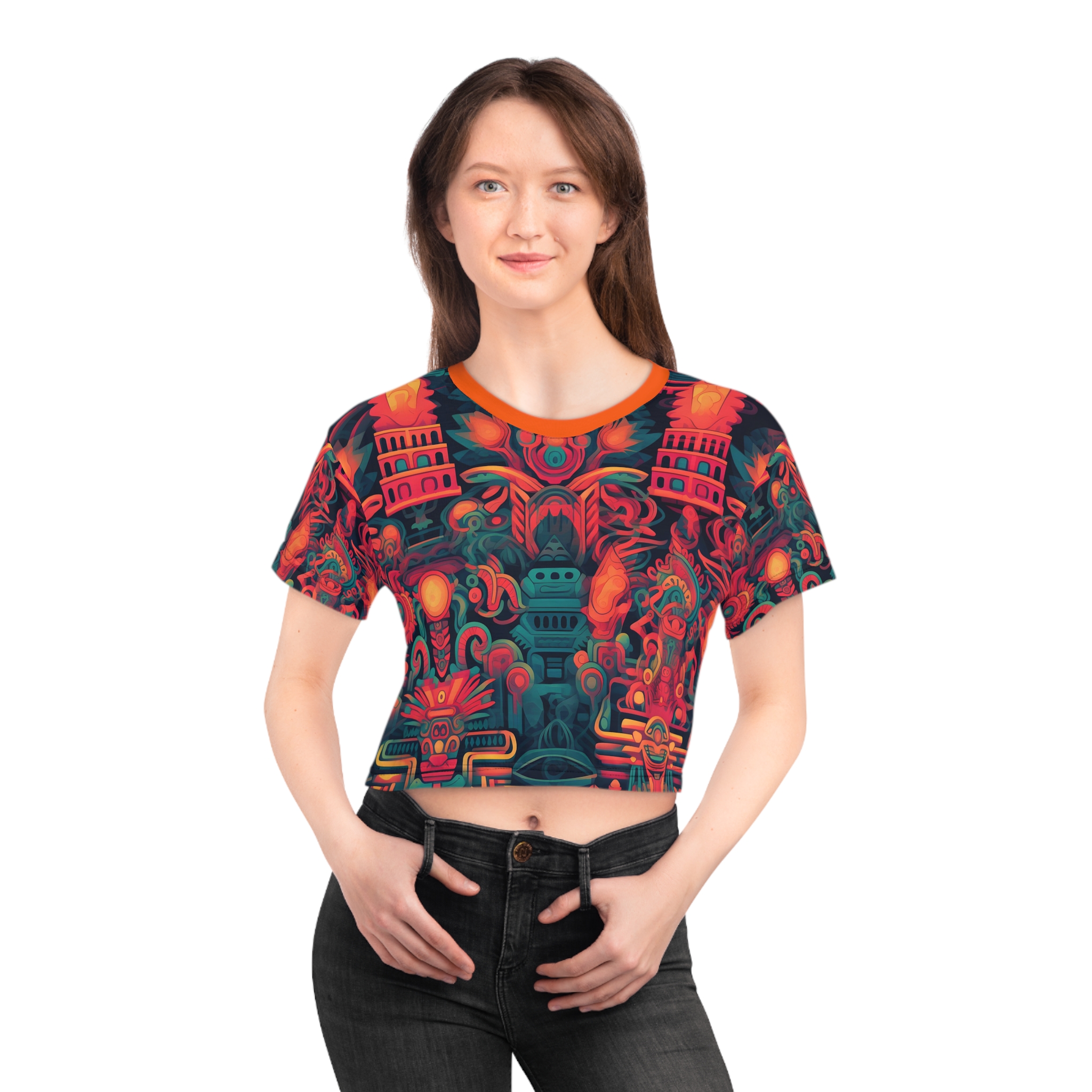 This personalized crop top has both comfort and style in spades. Add whimsical patterns, feel-good designs and create a unique AOP crop tee that’s perfect for everyday wear. Made 100% with silky soft polyester that is both lightweight and breathable.